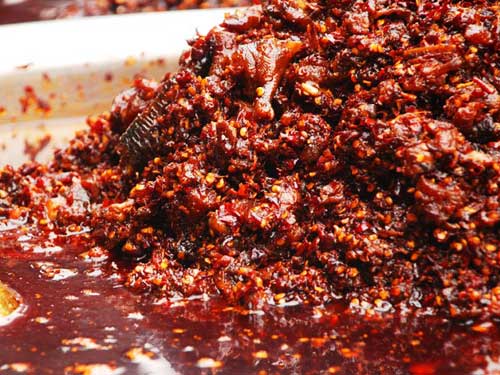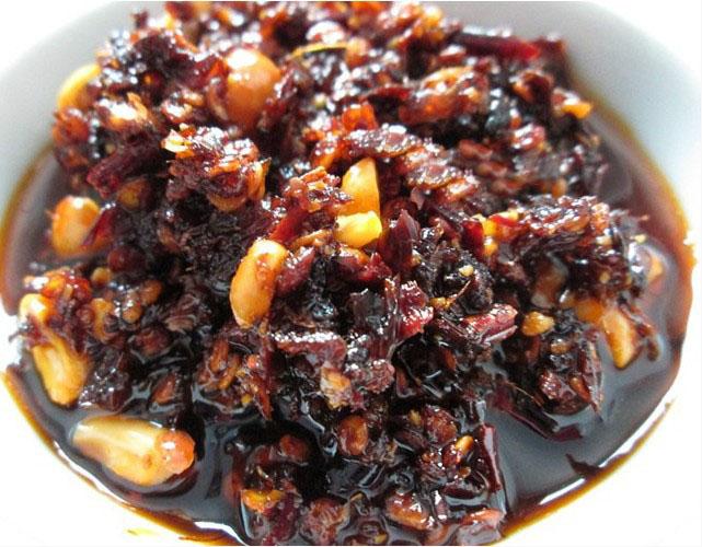贵阳青岩鸡辣椒是青岩最出名的地方特色美食,游青岩古镇品尝青岩鸡辣椒是游客的必选项目之一,但由于现做再炒的鸡辣椒口感不如冷食好,因此就发展为把鸡辣椒制作成方便食品,批量制作,客人随到随取,既方便快捷,口感又较之现烹饪的鸡辣椒更佳。更多的游客还点此菜打包带走馈赠亲朋好友。成菜色泽红润,肉火巴骨酥,嫩辣鲜香,味美爽口。