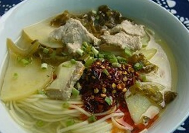 贵阳土豆酸菜面小贴士:不宜用酱油调味,以保证汤色清爽。