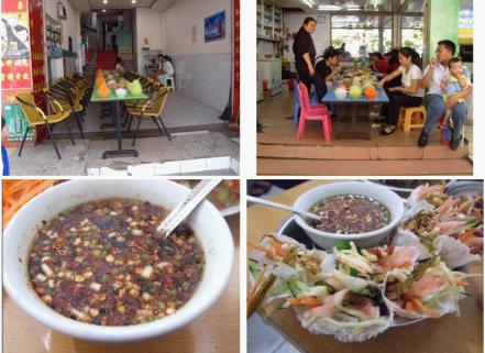 吃贵州特色风味小吃丝娃娃,一是吃各种配菜的清香脆嫩,二是吃蘸水的香辣酸鲜。