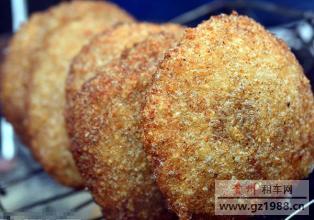 油炸糯食,贵阳清早街头巷尾都有卖,一张桌子,架一油锅,现做现炸,人们老远就闻到浓浓的糯米香,路人走上前丢2.5元钱拿起一个边走边吃,也有买了回家当早餐。外脆里糯,喜甜爱咸都可得到满足,吃完满口留香。