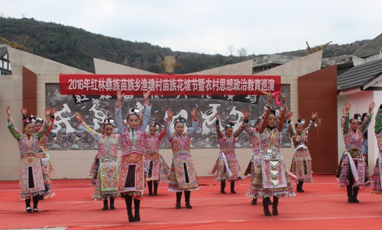 文艺节目的表演中,表演者展示了苗族同胞精美的服饰,表演了自编的舞蹈,演唱了自编的歌曲,优美的舞姿和悦耳的歌声迎得了现场群众阵阵掌声和喝彩。在文艺节目表演结束后,还举行了计划生育知识抢答赛,寓教于乐,加大计生知识的宣传力度。