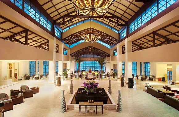 保利国际温泉酒店被近万亩的环城林带——顺海林场包围,不可多得的天然水系使其自上而下拥有错落的水体,综合规划的两湖、三溪、五公园,使得这块相对比较封闭的地块,拥有了良好的原生态植被和独特的自然景观。