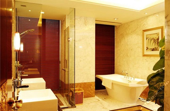 贵阳世纪金源大饭店推荐理由:酒店位于金阳新区,和周边的金源写字楼、商场、世纪城都是金源集团统一开发的,这样周围配套就齐全,也成熟,吃喝玩乐都有。离机场40分钟左右,离市中心10公里,出行都很方便,地面停车位超多。电梯上楼必须刷卡,而且就是你所在指定楼层,比较新颖。房间很大,设施也较新,该有的配置都有,尤其下沉式浴缸很有特色,客厅的窗户也能打开通风,很棒。就是感觉卫生间安装的洗脸盆感觉比较浅,洗脸的时候,经常会水溅出来,如果再次装修可考虑更换。早餐还可以,品种不多,节假日客人多,补充食物及时,收拾餐桌也很快,体现了五星酒店的服务水准。回家后,接到酒店电话,表示我们有衣物遗忘在房间,虽然我们不要了,但是对于酒店表现出来的细心和温馨很感动。这样的酒店水准再加上实惠的价格,真是性价比极高。