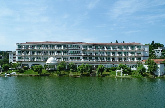 会员酒店沿湖而建,系四星级酒店的硬件设施。外观呈扁长流线型,状如银梭,瑰丽典雅。其功能齐全,内设购物商场、西餐厅以外,还设有大小不等的多功能会议厅,可根据会议需求进行布局安排,营造出白金级尊贵礼遇。