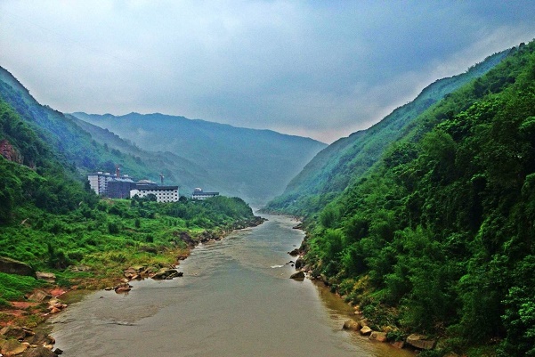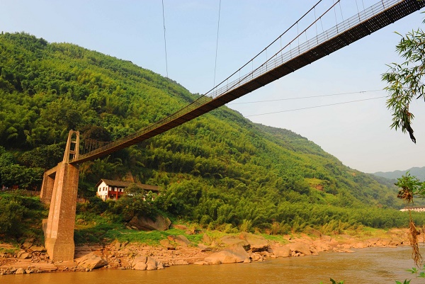 古镇距河滩10余米高,两座石门把守着东西场口。门旁各有一株苍劲古朴的大黄桷树。