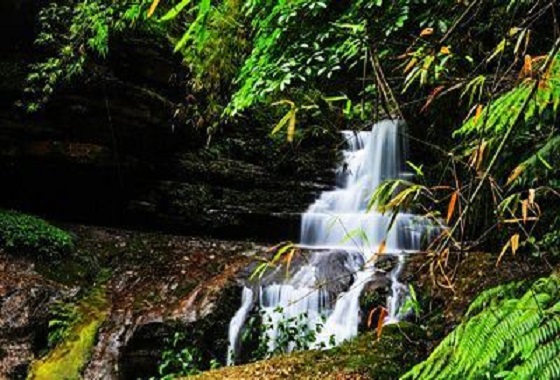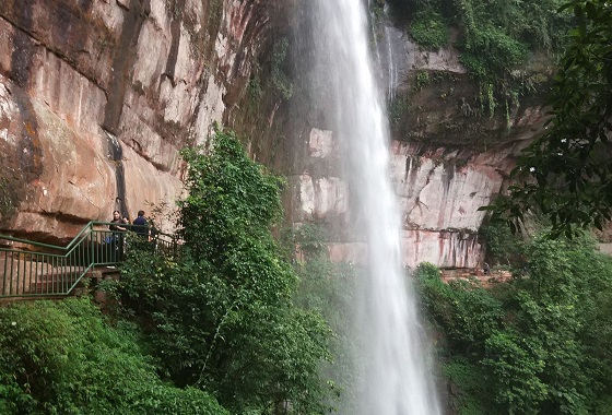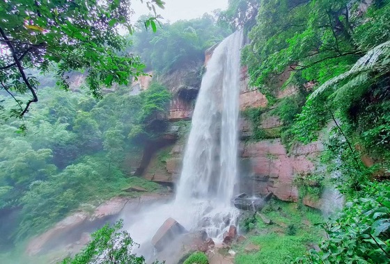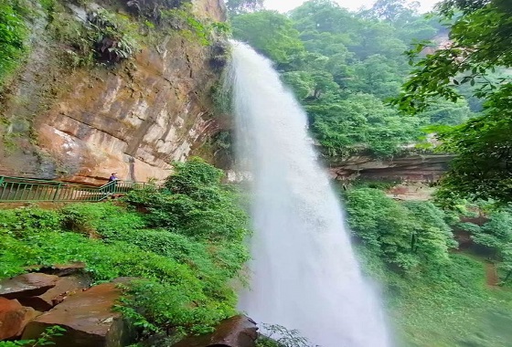 集森林景观、瀑布景观和丹霞地貌浑然一体,独具翠、秀、幽、奇、绝。