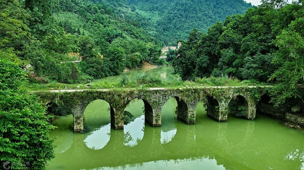 高百米、宽数十米跨江而过的天生桥被专家们誉为“大自然神力所塑的东方凯旋门”,观之令人肃然起敬,为大自然巧夺天工之神力报折服。