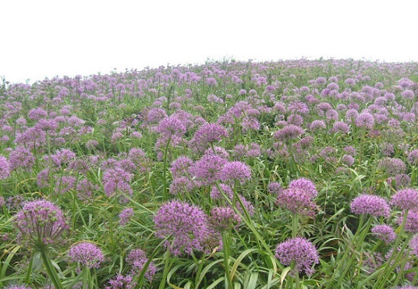 在八月末九月初来小韭菜坪游玩可以看到壮观的紫色花海,一大片野韭菜花竞相开放。