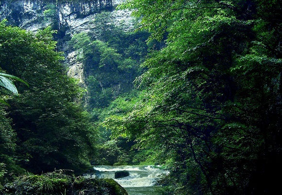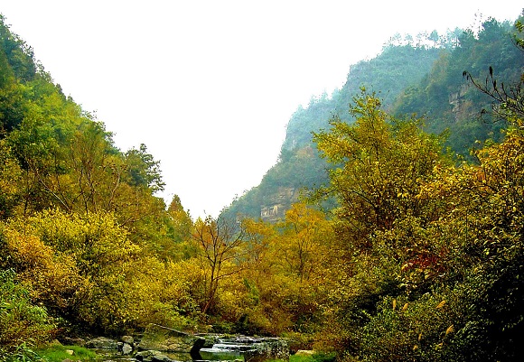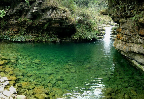 这里,峰谷相对,高差达450米,河谷蜿蜒9公里,大体呈现东西走势。谷底清溪潺潺,四季不息,河水明澈透底,河中鱼儿、螺蛳嬉戏,偶尔还可窥见珍稀的娃娃鱼身影。峡谷深处,两潭清水静卧,上游之潭名为小龙潭,面积约为70平方米,下游的大龙潭则更为宽广。