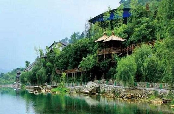 相传,三国诸葛亮南征时曾于此作战,当地现今仍有诸葛寨等地名,当地居民在修建房屋时也挖出过兵器等物。如今,金戈铁马的铁血萧瑟已换做了河畔农家的舒适安逸。一条连接两边柳绿河岸的索桥,静静地倒影在一湾清澈河水中。在浓密的古树树荫里,在当地古朴原始的阳戏歌声中,看着奔淌千年的河水,不由让人生出追忆古风铿锵,横舟河韵悠悠的思古情怀。