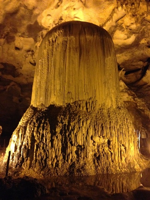 【荔波小七孔景区天钟洞】天钟洞位于汤耙石林的半坡上,洞长两千公尺,洞厅高大,洞内钟乳石钙化发育尚不完全,但形态逼真生动。最宽处38.6米,最窄处仅1.3米。