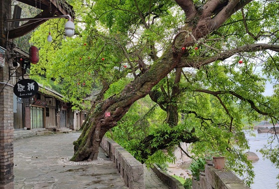体验,感受早已逝去的生活风情。青砖、拱门、石板街,不同朝代在此演绎不同的故事。如今城里人的时装店、家用电器店也在古镇上开着,不多,却也传递着现实社会的气息,古镇少女的高跟鞋也袅袅婷婷地踏过青石台阶。