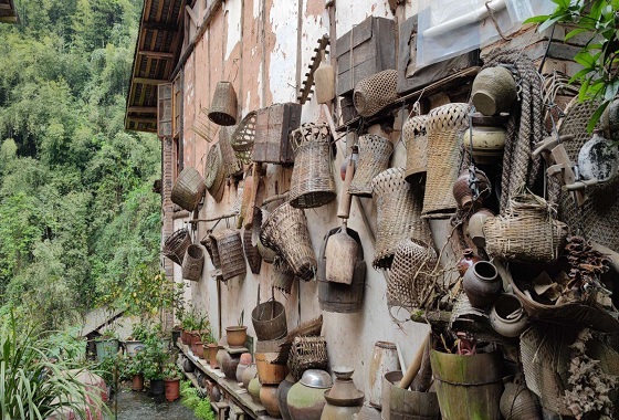 铁匠铺也随着商船的远去衰败下来。今天紧贴公路边仍有一家,风箱已不用人拉了,打铁的汉子赤着胳膊挥汗如雨,打的不再只是船上用的小铁具,只在叮叮当当的声音中,还依稀留有老辈人讲的那份热闹,仍能翻动古镇已远去的繁荣。