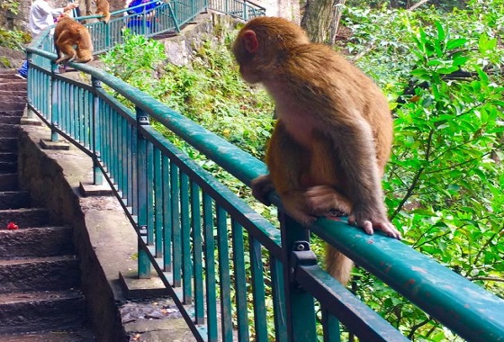 弘福寺及下山的这段路上猕猴特别多,不少游客来黔灵山公园就是为了看这些猕猴,猴儿们是公园放养的,一点不怕人,人反而要让它们三分,有照相机的手里要拿好,有食物的要特别藏好,因为猴子会来抢。