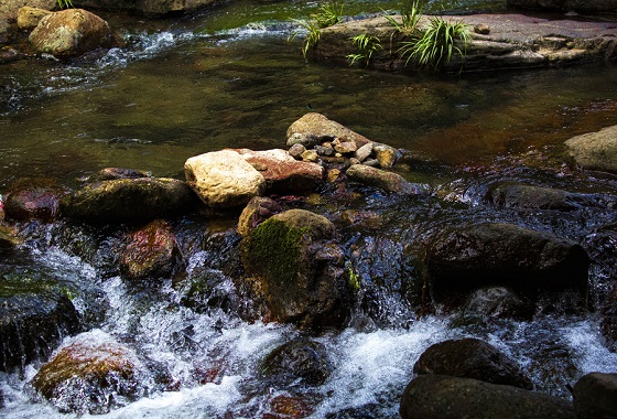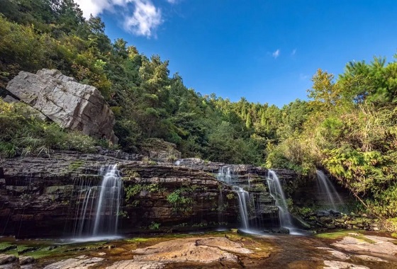 这里,峰谷相对,高差达450米,河谷蜿蜒9公里,大体呈现东西走势。谷底清溪潺潺,四季不息,河水明澈透底,河中鱼儿、螺蛳嬉戏,偶尔还可窥见珍稀的娃娃鱼身影。峡谷深处,两潭清水静卧,上游之潭名为小龙潭,面积约为70平方米,下游的大龙潭则更为宽广。