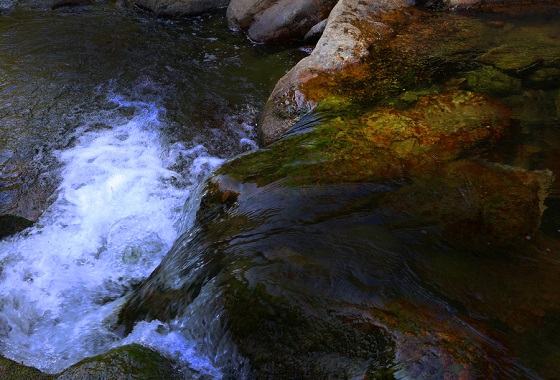 两潭相距约600米,均位于峡谷中段。传说大龙潭水深远不见底,至今无人探及。此处河谷最窄,两岸绝壁耸立,险峻异常,欲绕过大龙潭,须从左侧险峻的灌木林中小径穿行。