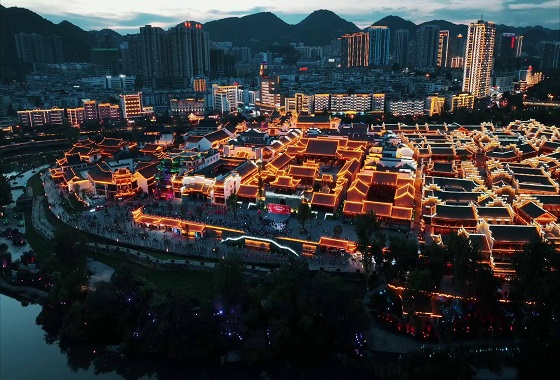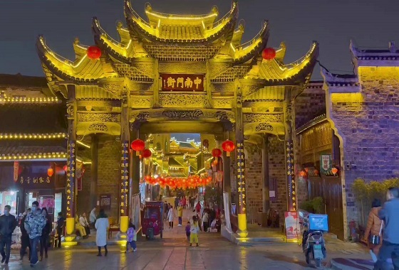 铜仁市中南门片区,荣膺第二批国家级夜间文化和旅游消费集聚区之美誉。位于中心城区中山路的中南门古城,占地达三万六千余平方米,古城之内,明清建筑与民国时期楼阁错落有致;四合大院、幽深古巷、露天井泉比比皆是。古韵盎然的封火墙之上,镌刻着标识家族界限的姓氏墙砖,见证了城市发展历程的沧桑轨迹,映射出明清至民国时期铜仁社会经济之繁荣景象。