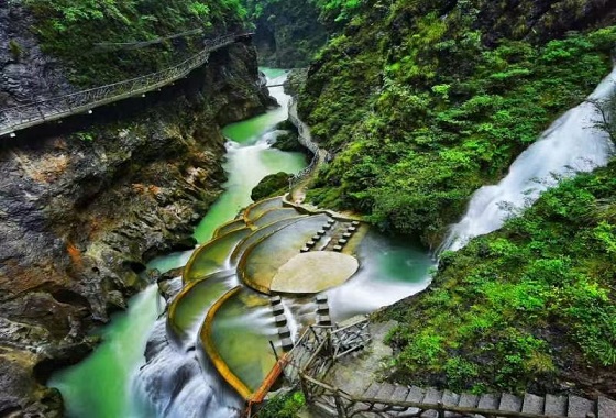 景区分为峡谷、漂流、平湖游三部分,融汇了峻、隐、幽、旷、奇、险之特色。这里,原始的峡谷与森林交织,空气清新纯净,迷人的溪瀑绘就一幅幅梦幻般的自然画卷——水清石奇,林茂花繁,云雾袅袅,悬崖绝壁,溶洞瀑布,美不胜收。