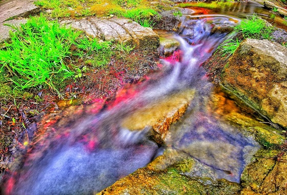 4、在分岔路口选择百步桥方向,向北行进,不走回头路。百步桥并非传统意义上的桥梁,而是由百余个水中石块铺就而成的小径,一侧是潺潺河水,另一侧是小巧瀑布,行走其上,既惊险又刺激。