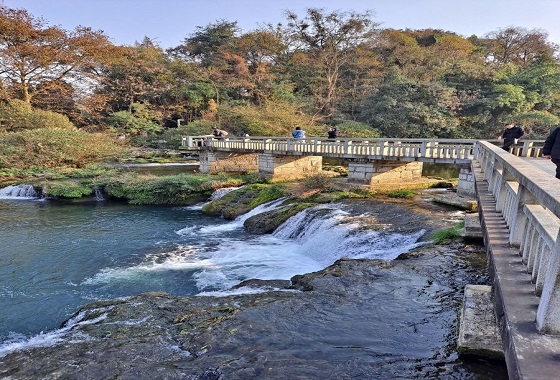 花溪公园乃是一处山水环抱之所,春季至此可目睹各类花卉争奇斗艳,夏季则是避暑消夏的绝佳胜地,秋季漫步于铺满梧桐叶的黄金大道,仿若置身梦幻童话之境。不过,园中最为迷人的当属碧绿的河水以及架于水上的各式小桥,其中最为有趣的当数那盘曲于水上的一个个石蹬——百步桥。