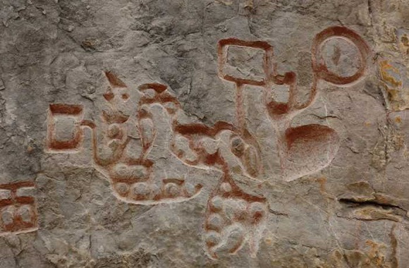 晒甲山上的红崖天书都是一些奇特符号,它们大小不一,每个符号好像都是随意摆放,之间没有任何的规律可循