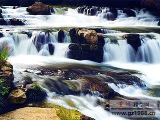 其中,香火岩瀑布群独领风骚。瀑布共分五级,最高级为15米,宽30米,级级 相连,总落差60余米。