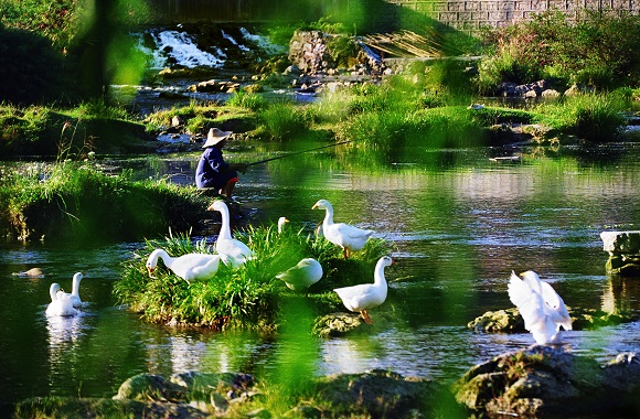 十里河滩:十里河滩景区南起牛角岛,北至龙王村,西临花溪大道,东抵大将山山脉,长6.5千米,面积2.19平方千米。十里河滩湿地生态系统包括农田湿地、河流湿地、沼泽湿地、河滩湿地、湿草甸、沟渠等多种类型,具有蓄水及消减洪峰的功能,能够调节气候,改善环境;蕴藏了极其丰富的生物资源,其中有国家级和省级重点保护植物7种——香樟、榉树、青檀、沉水海菜花、银杏、牡丹、杜仲,国家重点保护野生动物5种——大鲵(俗称娃娃鱼)、游隼、红隼、岩原鲤、多斑金线鲃。十里河滩景区秀峰环抱,竹木夹岸,洲岛错落,跌水潺潺,鱼游碧水,鹭戏浅滩,还有水车、碾房、粮仓等人文景观。陈毅元帅曾赞叹“十里河滩明如镜,几步花圃几农田”。