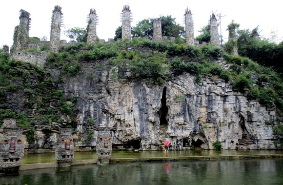 这里还是旅美归来的艺术工作者宋培伦手下的夜郎。宋培伦在美国生活时就创作过“夜郎古堡、夜郎图腾、夜郎脸谱”,在国内也创作了大型夜郎国作品“魔鬼城、夜郎谷”,还有众多关于夜郎文化的艺术品。夜郎谷是宋培伦在青山绿水间的杰作。