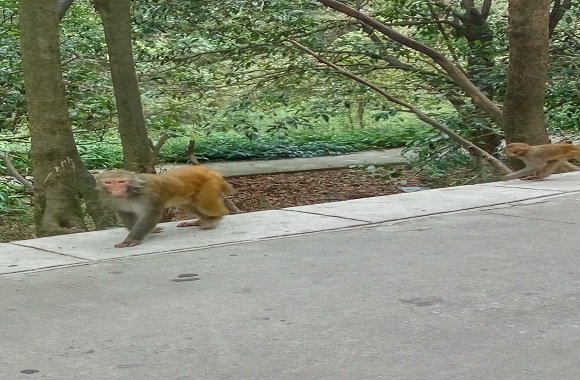 公园里有一些放养的猕猴,请将自己的随身物品放包里,不要去逗弄猴子,以免发生危险。