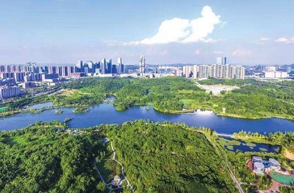 观山湖公园包括观山湖北湖和南湖(原金华湖),北部与贵阳市级行政中心相连。