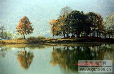 红枫湖位于清镇市郊,距贵阳33公里,坐车也就不到一个小时。他的湖域水面东西可达2公里,南北长达25公里。湖域四周遍布红枫树,金秋时节、枫叶似火、湖水轻柔、互衬互耀,故名曰:"红枫湖"颇具诗情画意。