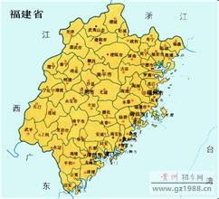 福建,简称“闽”,省会福州。位于中国东南沿海,东北与浙江省毗邻,西、西北与江西省接界,西南与广东省相连,东隔台湾海峡与台湾岛相望。北南最长为530千米,西东最宽为480千米。福建省现辖9个地级市福州、莆田、泉州、厦门、漳州、龙岩、三明、南平、宁德,和1个平潭综合实验区。
