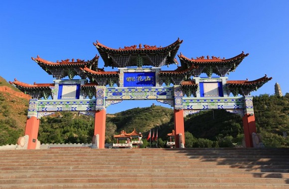 雪山寺位于靖远县永新乡,距离白银市140千米,距平川50千米,距靖远县城80千米。在哈思山主峰海拔3017米大峁槐山的东侧,形似腾飞的凤凰耸立中央,四面山环水绕,是名贯古今的佛教圣地,因山顶积雪深厚,常年不消,远远望去,银光闪烁,蔚为壮观,有“雪岭堆银”的美称,为靖远古八景之一。