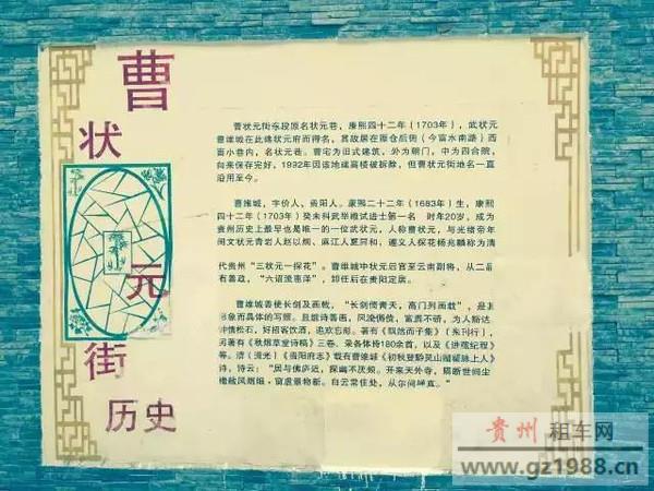 只可惜一位武将生在太平盛世往往少了用武之地,曹维城在云南任职的时间里也没机会立下什么显赫的战功,估计他还看透了做官也是浮云,在三十多岁时就自己辞职,返回家乡。不久他就定居在贵阳城南常平仓,也就是现在的曹状元街一带。到贵阳后,这位曾经的御前侍卫广交朋友,与当时贵阳知名的周渔璜、吴中蕃等一帮文人混在一起,读书论画、文酒相娱,颇有些魏晋名士的气度。只是可惜了他一身的好功夫,也不开个精武门什么的,把尚武精神在贵阳发扬光大一下。