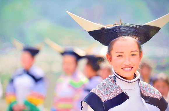 “长角苗”是梭戛苗族的他称,因这一苗族支系的妇女用一支木制长角以及亡故祖先的头发伴之以黑麻毛线束成发簪,装束极为奇特,形似长角,故得名。