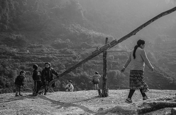 打磨磨秋:也叫打丁字秋,在村旁草坝上立四尺多高的一根树桩,桩横顶一根六尺木棒,桩棒接触处能转动,玩时横棒两端各一人,脚尖点地而转,越转越快,乐趣甚浓。